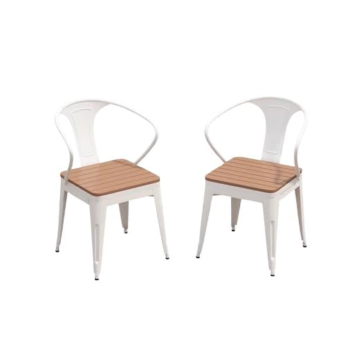 KIBONCY Outdoor Patio Dining Set 2 Seater, Round Wood Top Metal Table & 2 Ergonomic Armchairs, Rust-Proof All Weather Bistro Furniture Easy Assembly(A,Two chairs)