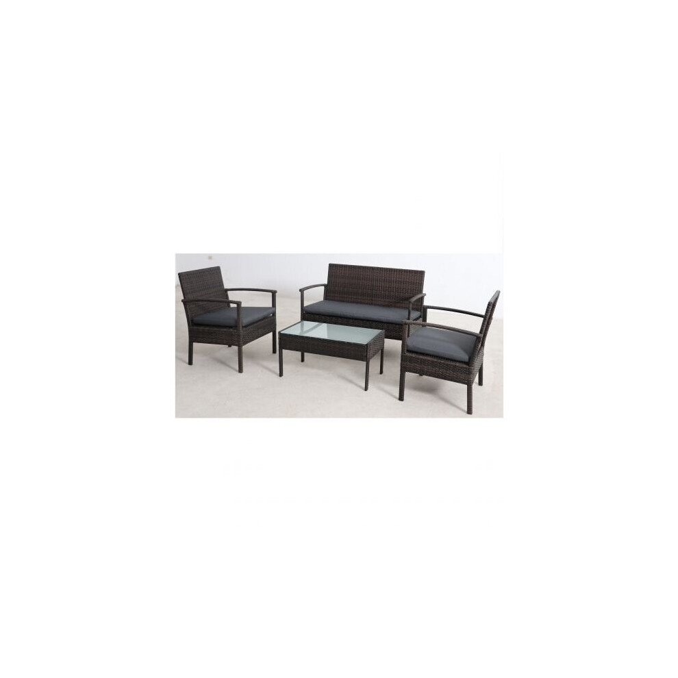 SH&G Heaton 4 Seater Sofa Set | 4 Piece Table, Chairs & Sofa | Steel & Brown Rattan with Grey Cushions | Indoor & Outdoor | Signature Homes and Grdens