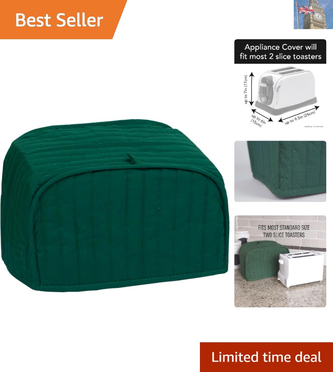 Stylish Dark Green Quilted Two-Slice Toaster Cover - Dust Protection Included