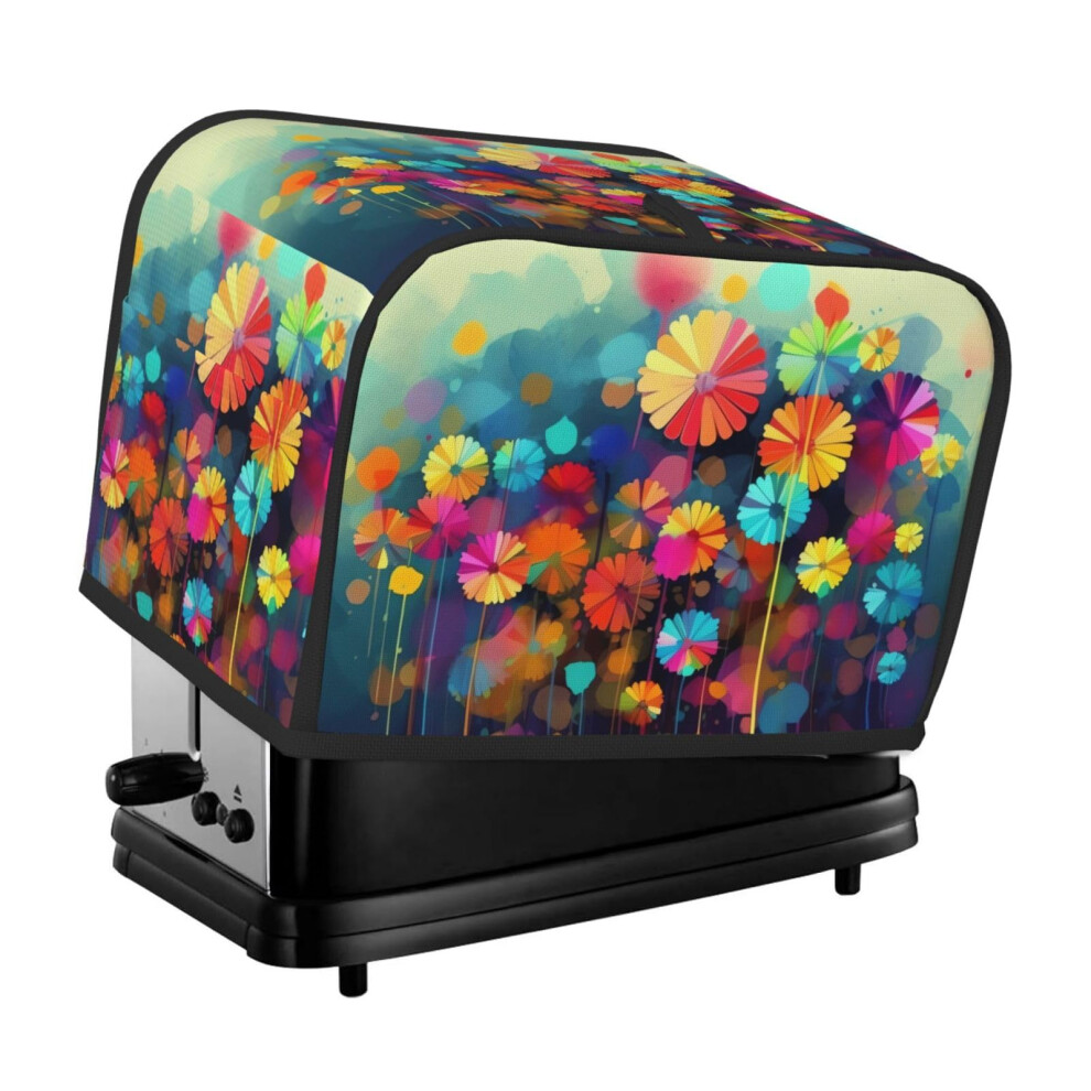Abstract Style Colorful Flowers Toaster Cover 2 Slice, Two Slice Bread Machine Covers Quilted Toaster Dust Cover Universal Size Kitchen Small Applian