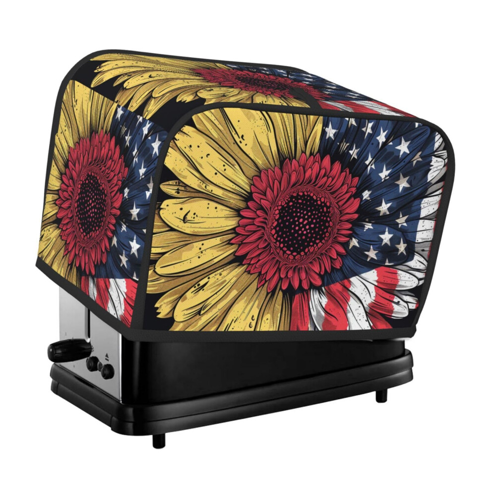 Two Slice Toaster Cover with Sunflower US Flag Printing Kitchen Small Appliance Covers Fingerprint Protector