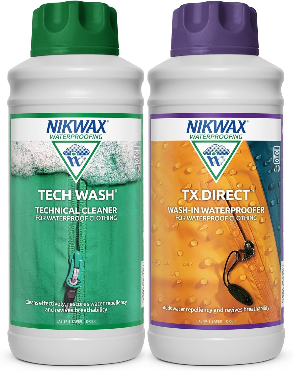 Nikwax Tech Wash & TX Direct 1 Litre Twin Pack Cleaning Waterproof Outdoor Coats