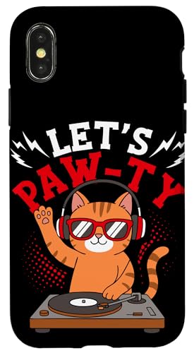 LET'S PAW-TY Funny Cat DJ Case for iPhone X/XS