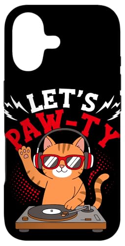 LET'S PAW-TY Funny Cat DJ Case for iPhone 16