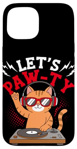 LET'S PAW-TY Funny Cat DJ Case for iPhone 15