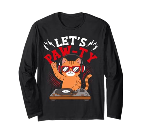 Let's PAW-TY Funny Cat DJ Long Sleeve T-Shirt