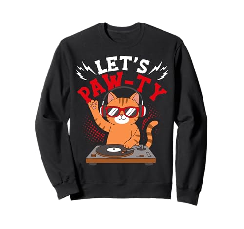 LET'S PAW-TY Funny Cat DJ Sweatshirt