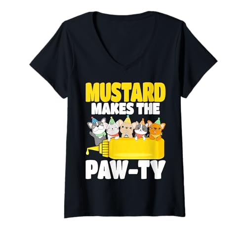 Women's Mustard Makes The Paw-ty Cat Mustard Lover V-Neck T-Shirt
