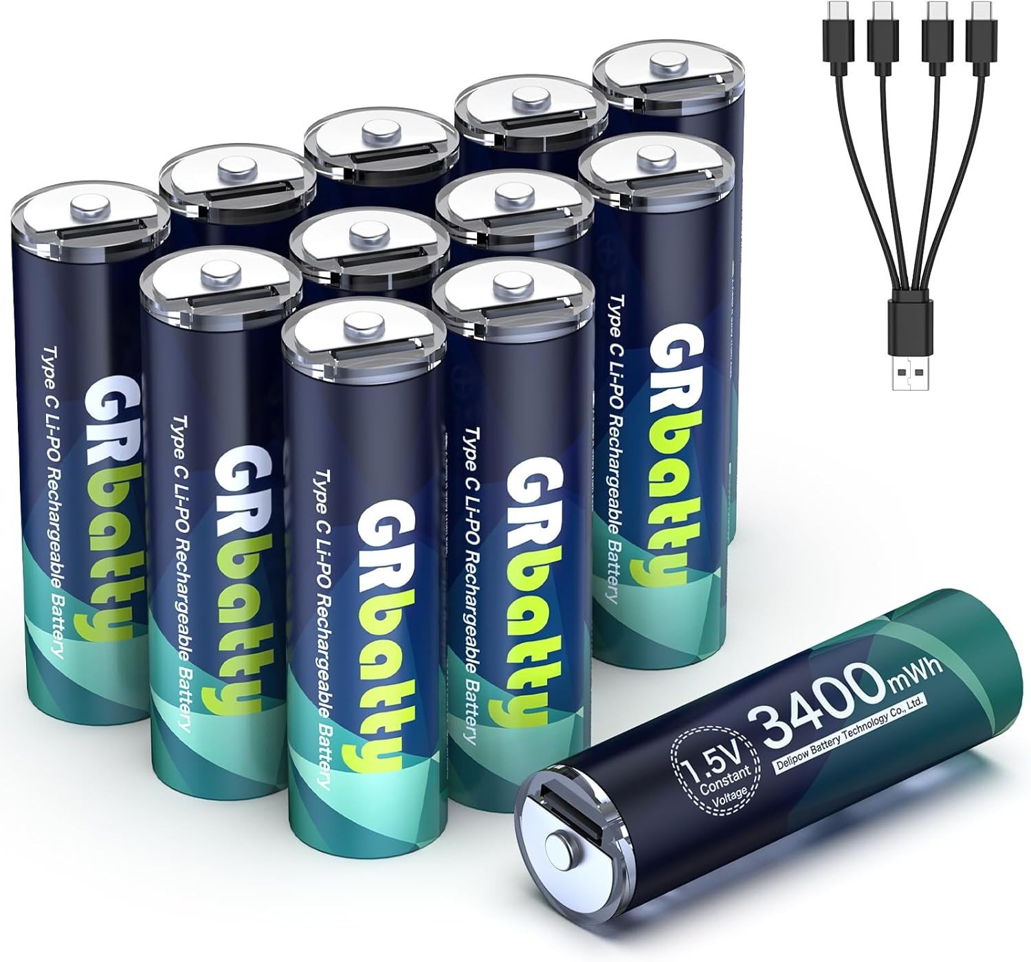 GRbatty Rechargeable AA Batteries 1.5V 3400mWh USB in 1 USB Type C Charging Cab