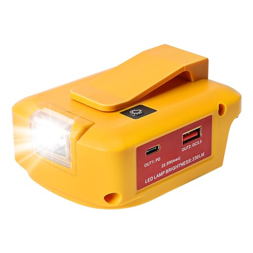 Powarobor Power Source Battery Adapter LED Work Light Converter for Dewalt Battery 18V and Milwaukee M18 18V Batteries with USB & Type C phone Charger and DC Port for Heated Jacket (Adapter Only)