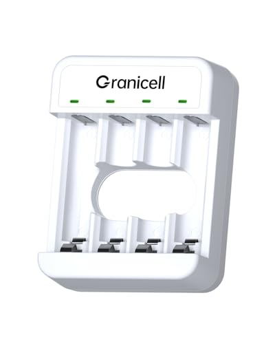 Granicell AA AAA Rechargeable Batteries with 4 Bay Battery Charger, USB Smart Battery Charger, Type-C Connector with LED Display, Individual Slots for Ni-MH/Ni-CD Rechargeable Batteries