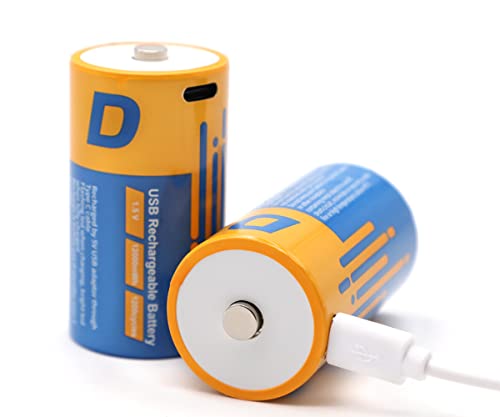 SZEMPTY Lithium Rechargeable Batteries D, 1.5V Li-ion USB AA Battery 12000mWh with 2 in 1 Type C Charging Cable, Pack of 2