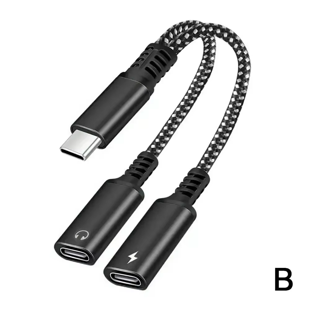 2 in 1 Type C Headphone Charging Jack AUX Audio Adapter for B