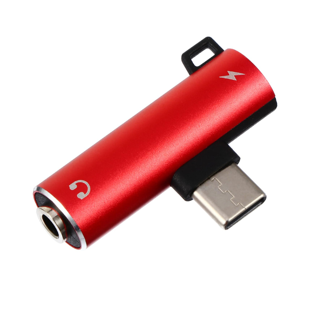 2 In 1 Type C Dual Headphone Jack Adapter Audio Charger for Samsung Huawei Splitter Converter Xiaomi mi 8 RED