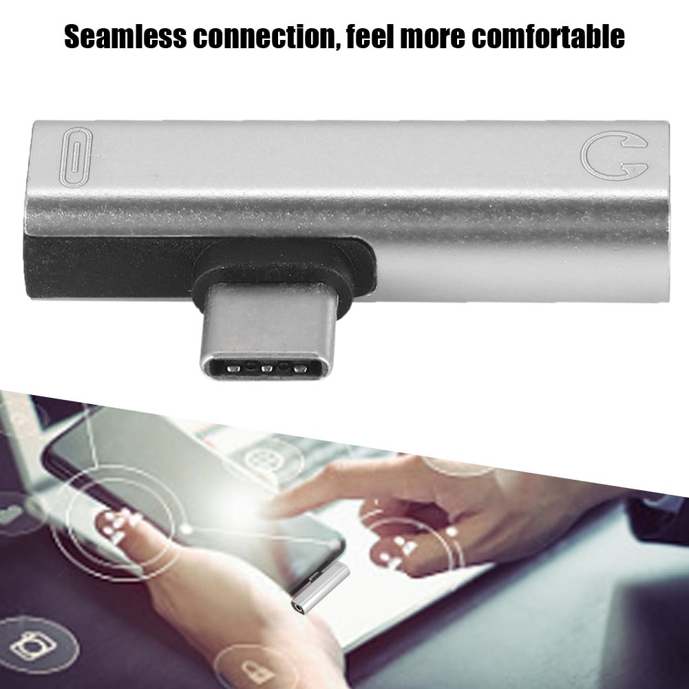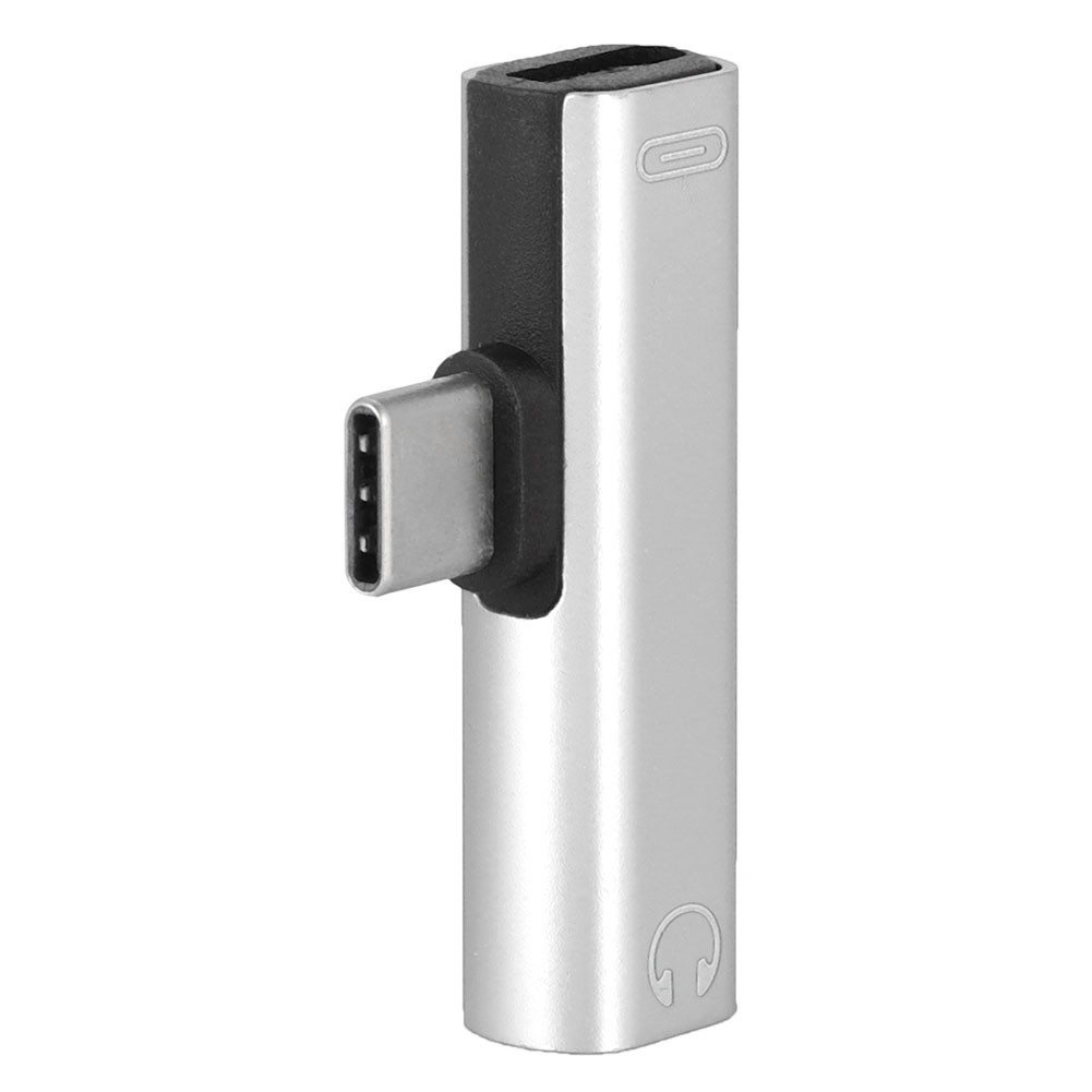 Silver 2 In 1 Type C To 3.5mm Jack Headphone USB Charging Converter Multi F TU