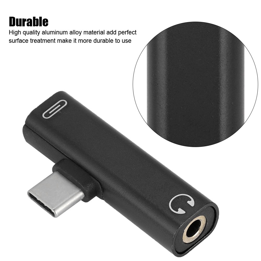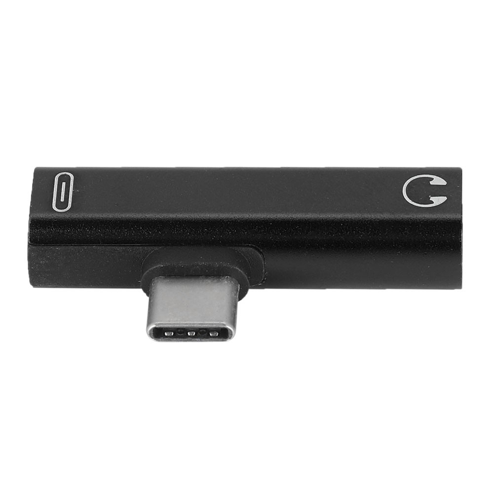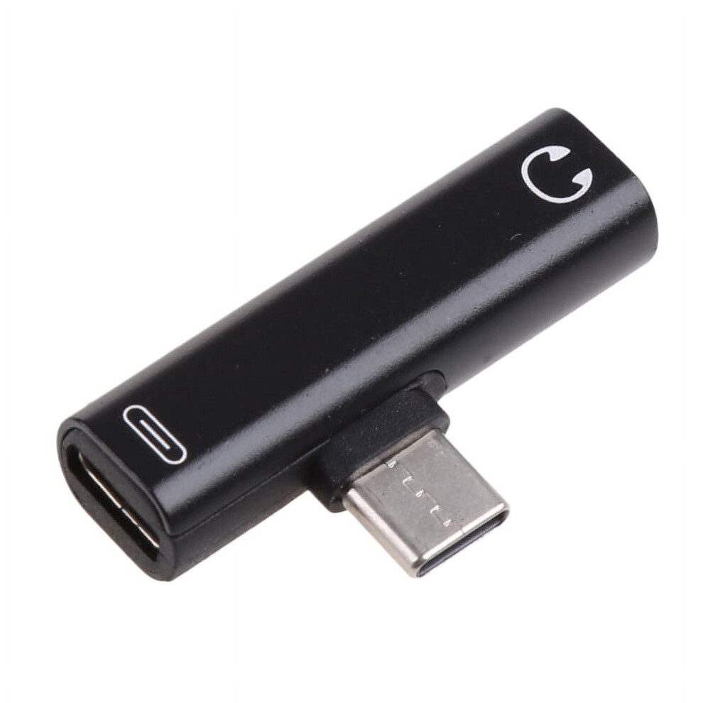 Black 2 In 1 Type C To 3.5mm Jack Headphone USB Charging Converter Multi Fu