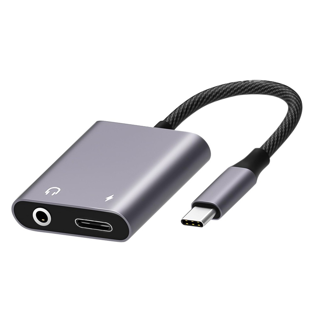 2-in-1 Type-C To 3.5mm Jack Headphone Adapter Charging Port Portable Mini