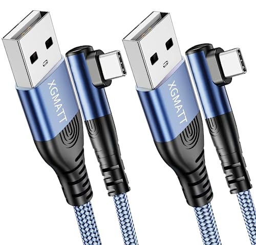 XGMATT Type C Charger Cable 2M 2Pack, Right Angle Fast Charging, Nylon Braided Compatible Samsung S10 S9, Huawei P10, Google Pixel, LG, Blue
