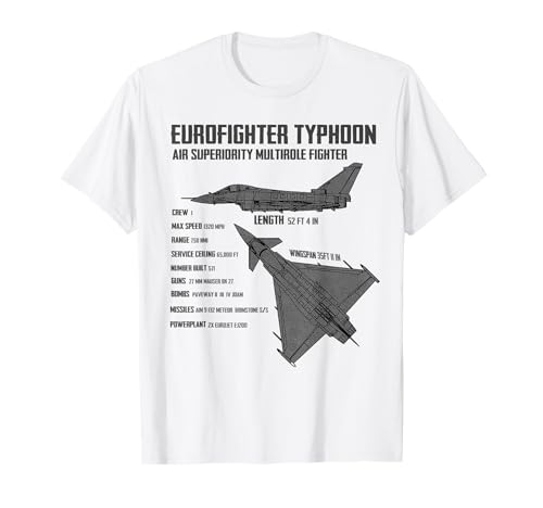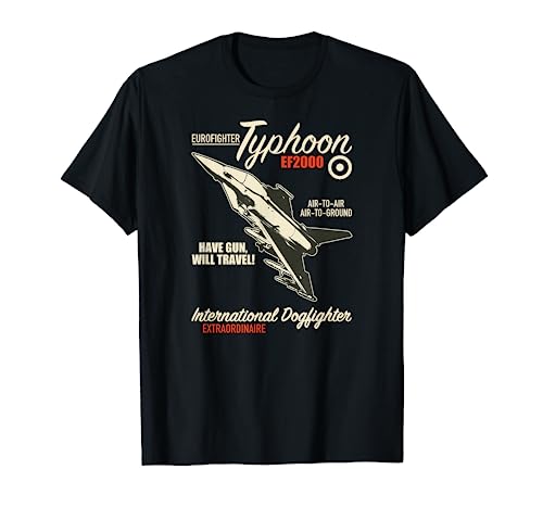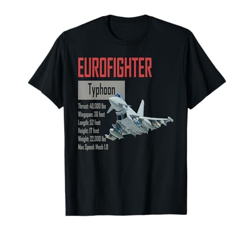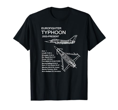 Eurofighter Typhoon Multirole Fighter Apparel Co. British Fighter Aircraft Eurofighter Typhoon T-Shirt - Unisex Adults - Black - Small - Classic Fit - Club Collar - Military - All Seasons