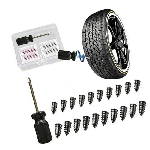 TUOKLNC 10/20/30/40pcs Car Motorcycle Tubeless Tyre Repair Kit with Screws & Nail Patches for Quick Puncture Fix and Emergency Roadside Assistance(21Pcs Mix Screwdrive)