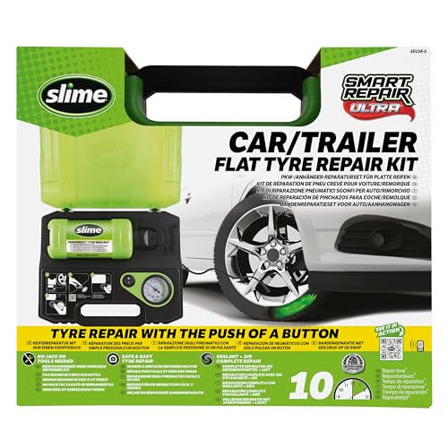 Slime 50158 Flat Tyre Repair Kit, Smart Repair Ultra, All-In-One Solution, Repairs and Inflates, Car/Trailer, 10 Min Fix
