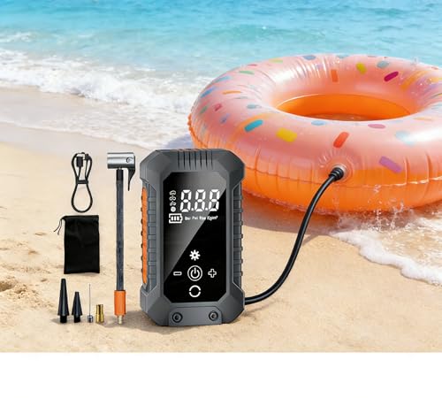 DOMOR Cordless Tyre Inflator, Car Tyre Inflator Air Compressor, Portable USB Rechargeable Electric Bike Pump 150 PSI, Tyre Pump with Pressure Gauge for Car Tire, Bike, Motorbike, Ball