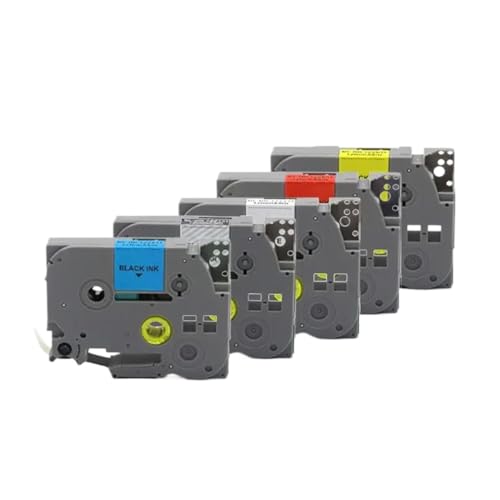 SEFNPOME 5PK 6 9 12 18 24mm Flexible ID Laminat Tape Compatible With TZe FX211 221 231 241 251 Black On White For Label Printers