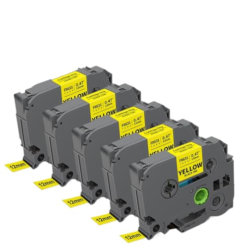 UVQAPXWD 5PK 6mm 9mm 12mm TZe-FX231 Label Maker Tape Compatible With Printer Supplies TZe-FX211 TZe-FX221 TZe-FX611 TZe-FX621 TZe-FX631 For Part Number TZe-FX231(Black on Yellow)
