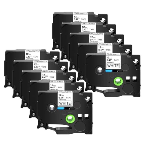 PrecisGear 10 Pack TZE231 12mm Compatible With For H110 D600 For TZE-231 TZE-221 TZE-631(White on Black)