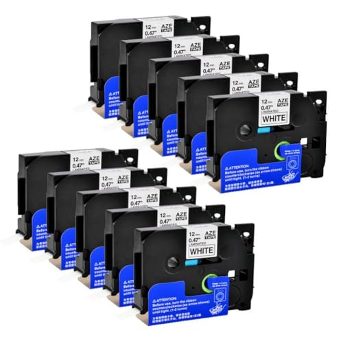 SEFNPOME 5/10PK Black On White 6-24mm Laminated Label Tape TZe TZ 221 231 241 251 Compatible With PT-D400 PT-E100 PTH110 Label Makers(10PK Black on white)