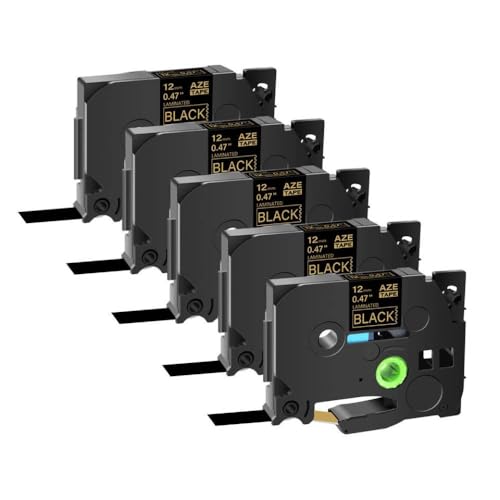 PrecisGear 10Pcs TZE231 Tape 12mm Compatible With H110 D600 For Label Tape TZE-231 TZE-221 TZE-631(Gold on Black)