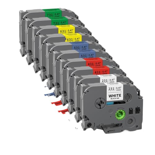 PrecisGear 10PK 6mm 9mm 12mm 18mm 24mm Tze231 Label Tape Compatible With Label - Tze 231 Tze221 Tze211 Tze241 Tze251 Tze231(10PK 5Mixed Colors,12mm)