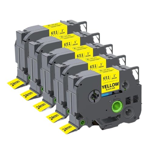 LQNXAVUD 5/10Pcs 24mm Label Tape Works With TZE 251 151 451 551 651 751 Compatible For Label Maker PT-H500 PTD600(Black on Yellow)
