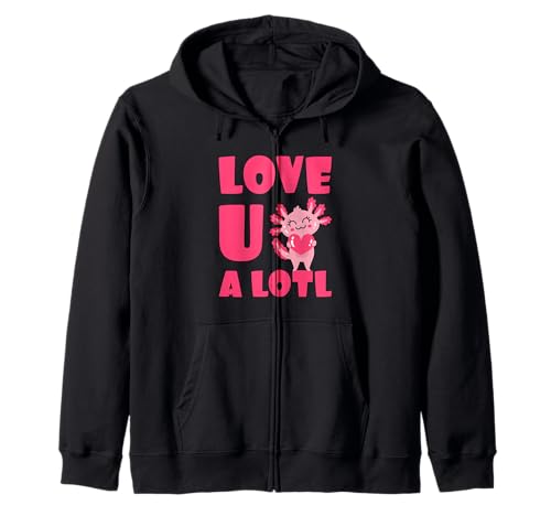 Love U A Lotl Axolotl Heart Kawaii Valentines Day Zip Hoodie