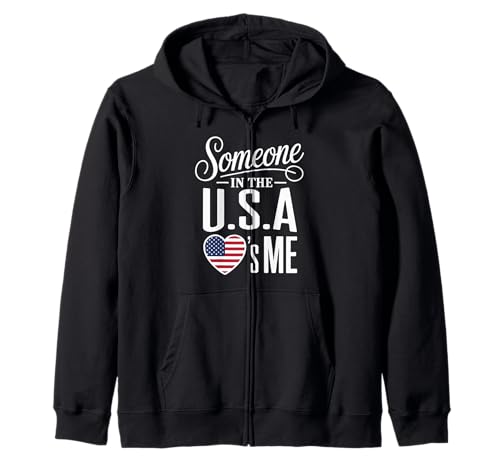 Someone In The U S A Loves Me Heart Flag Zip Hoodie
