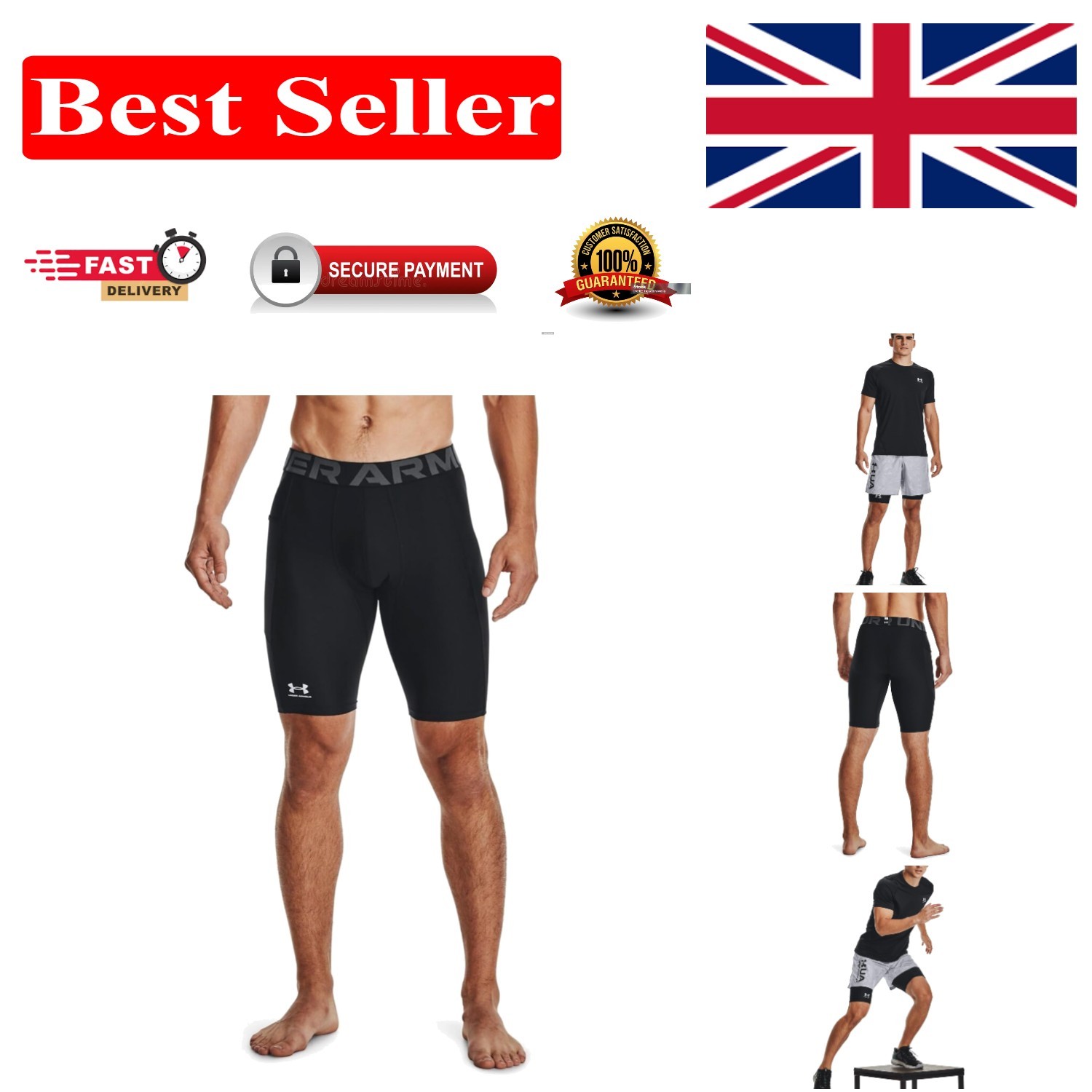 Men's UA HG Armour Shorts: Compression, Lightweight, S Long - Black/White