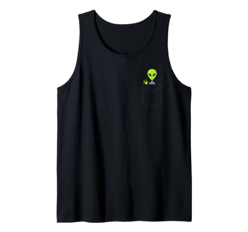 Little Alien Pocket, ET, Spaceship, Area 51 UFO, UAP, Drone Tank Top