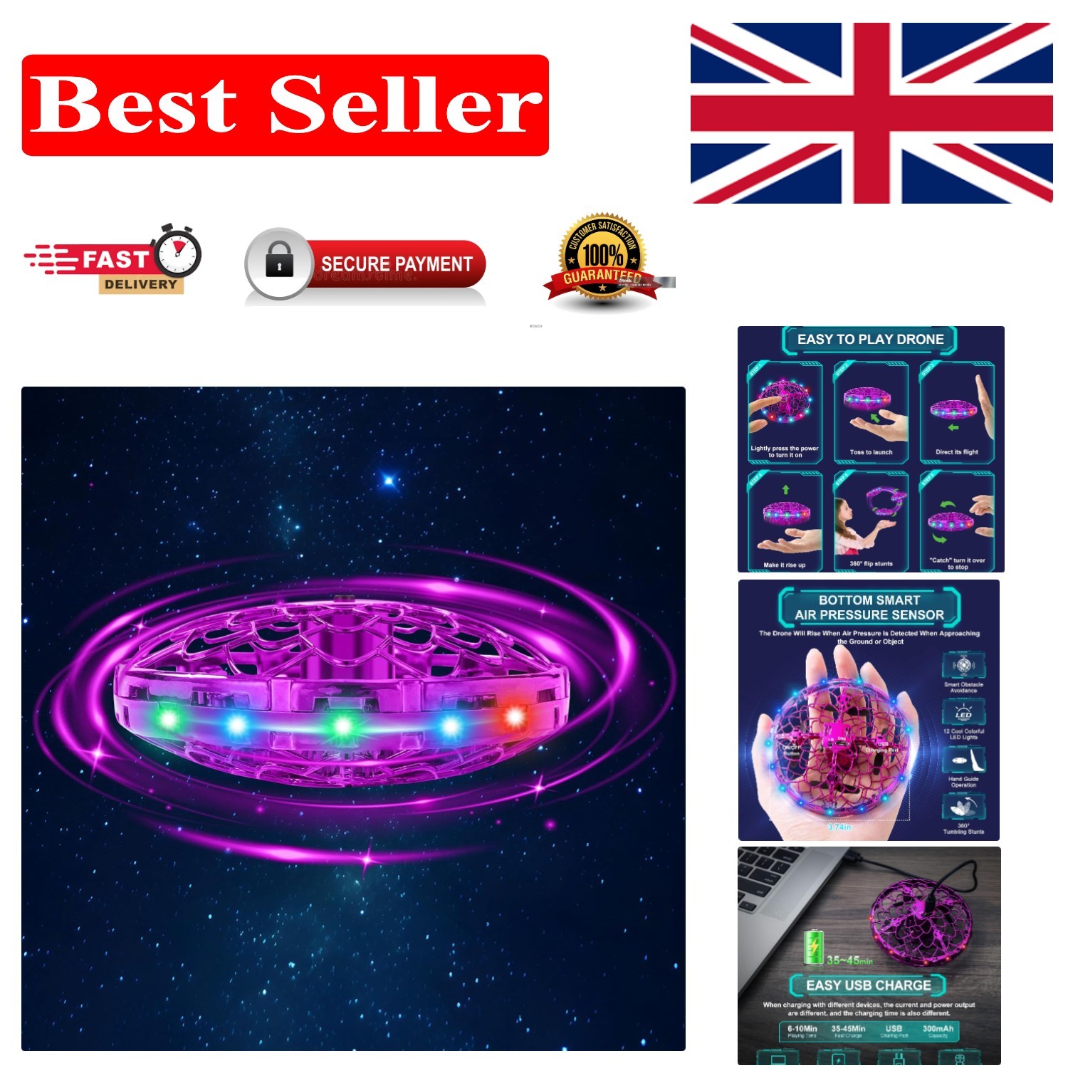 UFO Flying Ball Drone with Colorful Lights - Hand-Controlled Fun for Ages 8-12