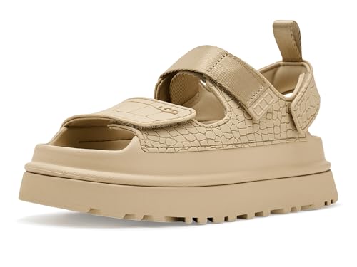 UGG Women's Goldenglow Embossed Sandal, Mustard Seed, 8