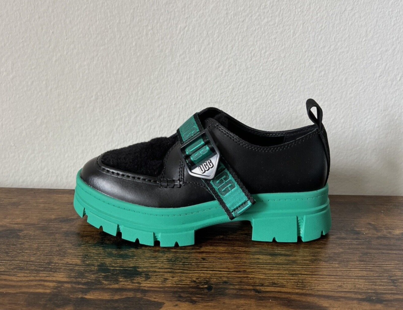 UGG Ashton Plush Emerald Green Waterproof Leather Platform Shoes Womens Size 5