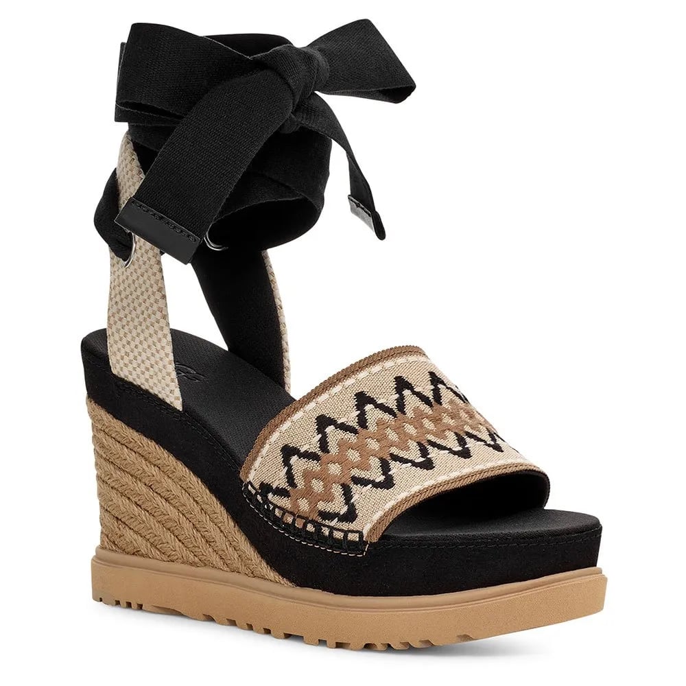 Ugg Trina Wedge Ankle Tie Bow Detail Sandals Suede - Black - UK Size 3 EUR 36