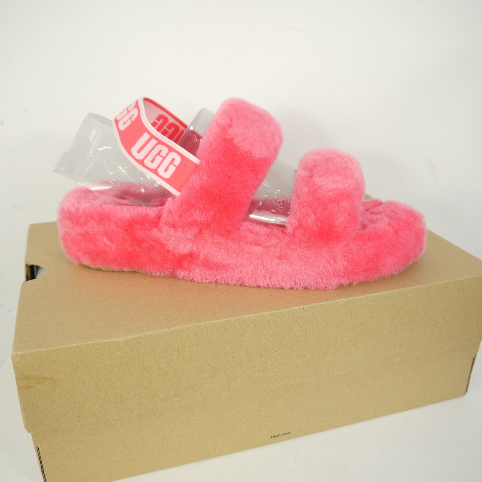 UGG Oh Yeah Slides Pink Sheepskin Fluffy Sandals Strappy Size UK 8 BNIB