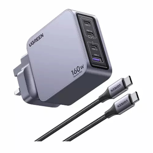 UGREEN Nexode Pro series 160 W 4-Port GaN Universal USB Charger, Silver/Grey,Black