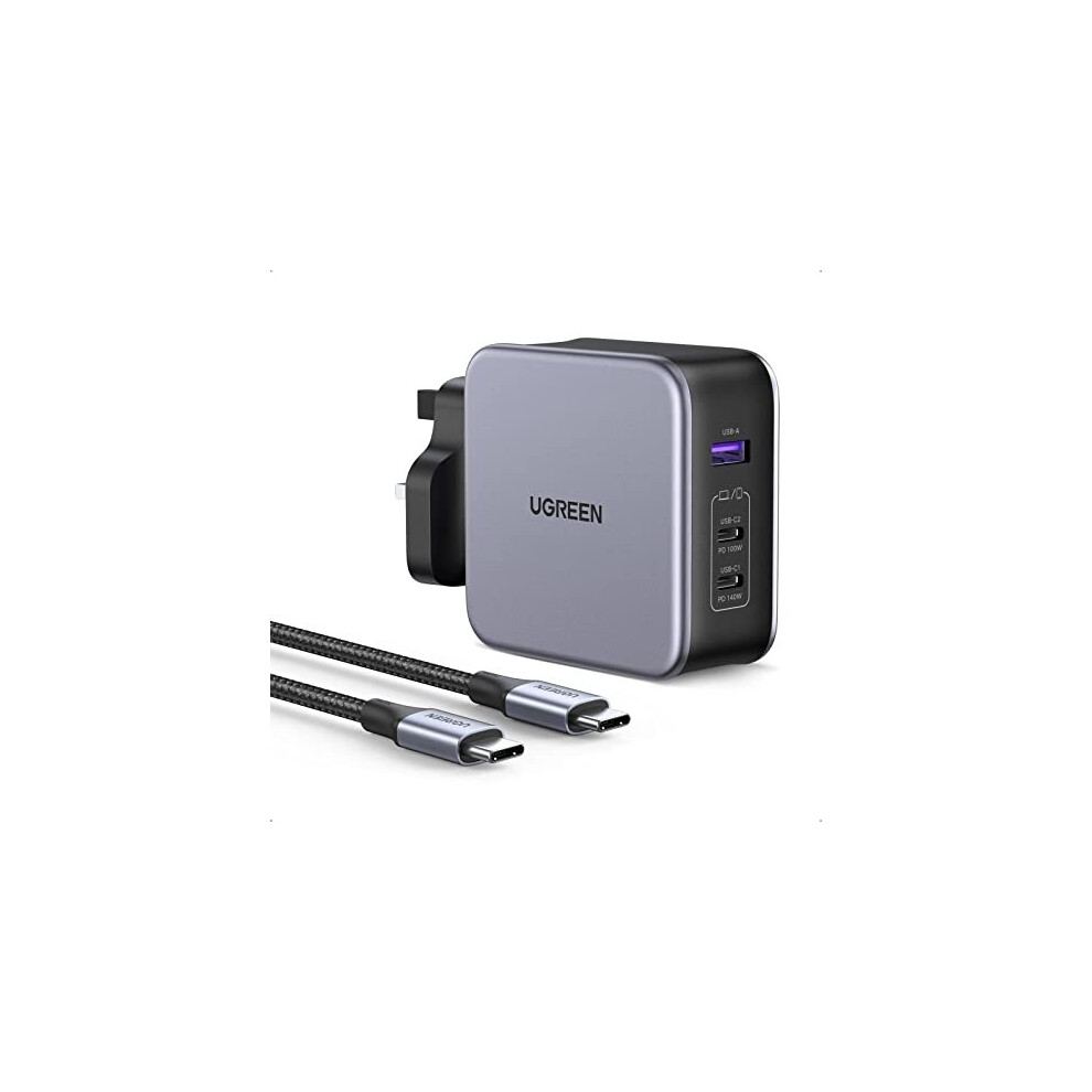 UGREEN Nexode 140W USB C Charger, 3-Port GaN PD 3.1 Laptop Charger with 2M USB C to C Cable Compatible with MacBook Pro 16"/Air, Dell XPS, iPad