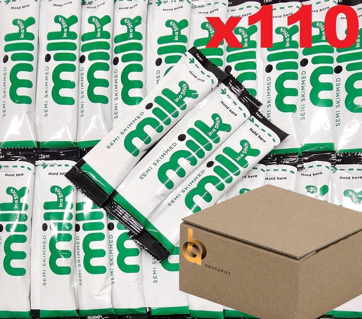 110x Semi-Skimmed UHT Milk 10ml Individually Wrapped Sticks Portions Sachets Lakeland