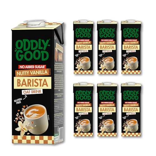 Oddlygood - Nutty Vanilla Barista Oat drink 1 Litre x 6, No Added Sugar, Gluten Free Oats, UHT Barista Oat Milk-Alternative Ideal for Coffee, Latte & Beverages, Perfect Milk Substitute