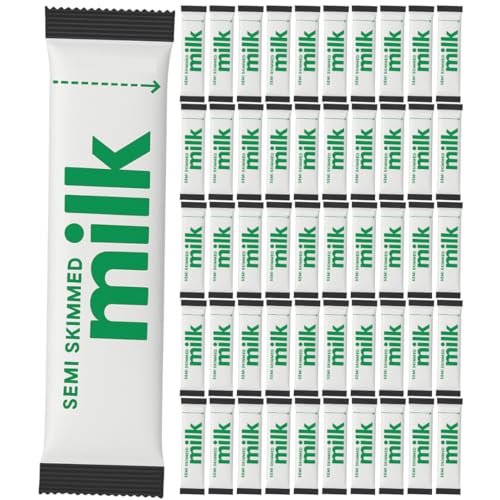 Milk Sachet Bundle – 50 x UHT Semi Skimmed Milk Sticks – Long Life Individual Portions for Coffee, Tea, Travel, Hotel, Office – WoodzyCo Exclusive