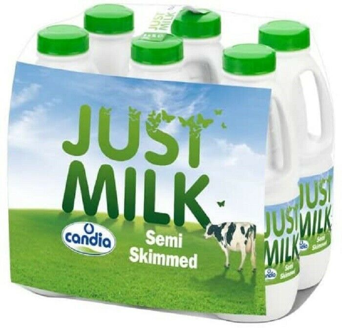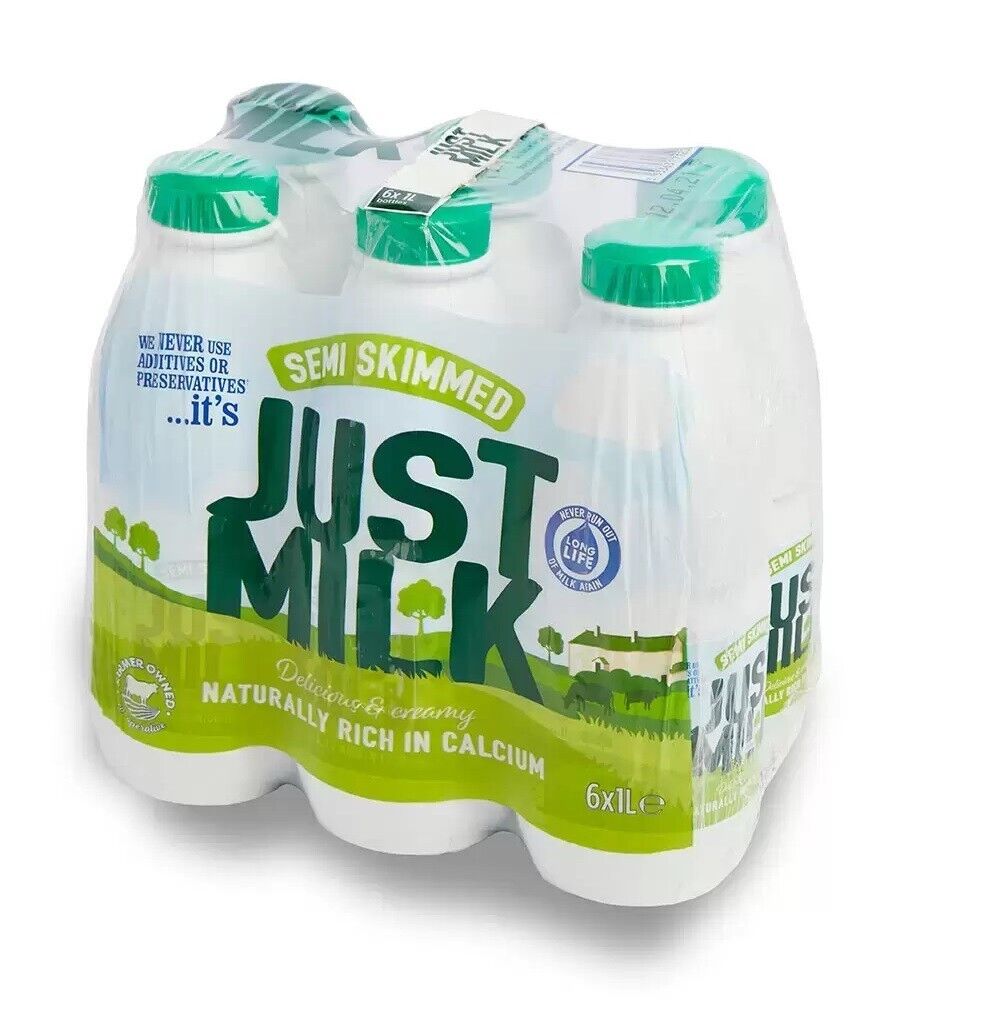 Candia Just Milk UHT Long Life Lasting Semi-Skimmed Fresh Bottles Pack 6 x 1L