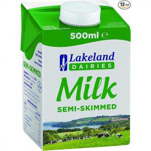 Lakeland UHT Semi Skimmed Milk 500ml Pack 12 - 0499134 49790CP