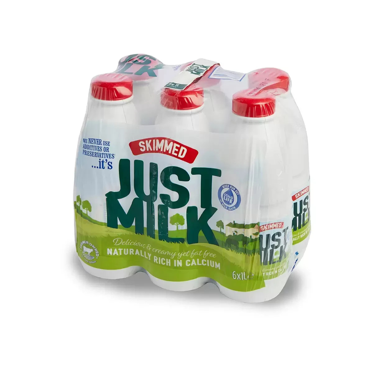 Candia Just Milk UHT Skimmed Long Life Fresh Milk - Pack of 6 Bottles x 1L